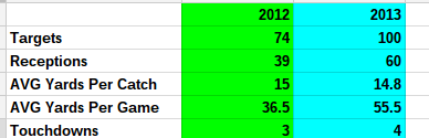 With the departure of Darrius Heyward-Bey and Brandon Meyers, 185 targets from 2012 were freed up in 2013, which Streater took advantage of. Even though the Raiders attempted 110 fewer passing attempts in 2013 than the year before, the 26-year old receiver was still able to have a productive season. When Schaub started 16 games, his average passing attempts totaled 567 yards. The organization has more confidence in Schaub’s arm than it did in Terrelle Pryor‘s throwing abilities, so if Schaub can keep the starting gig, he should average between 550-570 passing attempts.