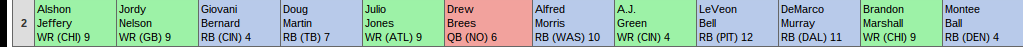 Jon’s Thoughts: Going back to the Week 9 bye, I took Jones and all of the assumed injury risk that comes with him. When he is healthy(he was on pace for almost 1,900 receiving yards before his foot injury last season), however, he is Matt Ryan’s favorite target. I think taking Jones is a huge risk, but the ceiling for him is pretty darn high.