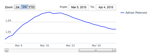 Peterson is currently being drafted as the fifth running back off the board on FantasyFootballCalculator.com. While the Fantasy Football community only has one game from 2014 to judge Peterson for 2015 leagues, it seems like his pedigree is speaking for itself.