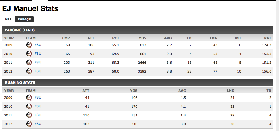 Manuel’s stats in college weren’t exceedingly impressive, but he still could become a serviceable quarterback.