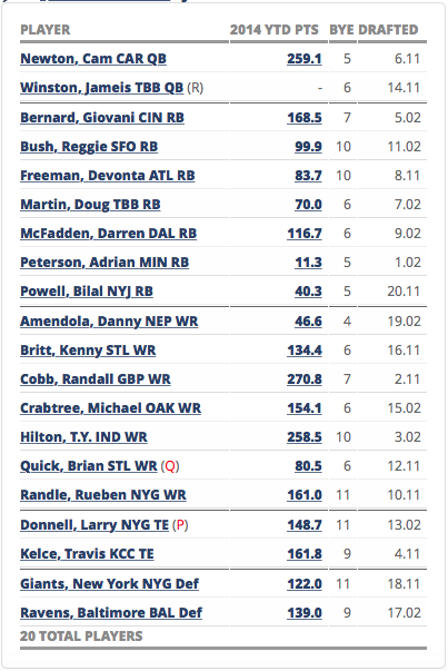 This was the first time I became an owner of Darren McFadden this season, but I thought he was a good deal as a ninth-round pick. It’s still murky in the backfield for Dallas, but I didn’t spend a lot to find out what McFadden can do next season. Reggie Bush also offers nice value in Round 11. He offers a different skill set than Carlos Hyde, and I think Colin Kaepernick is going to love having a true pass-catching back. My last pick of the draft was Bilal Powell. The New York Jets’ depth chart is busting open with running backs, but Powell is valuable in a PPR format because of his pass-catching abilities.