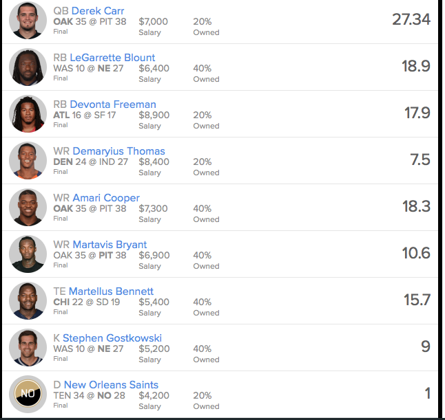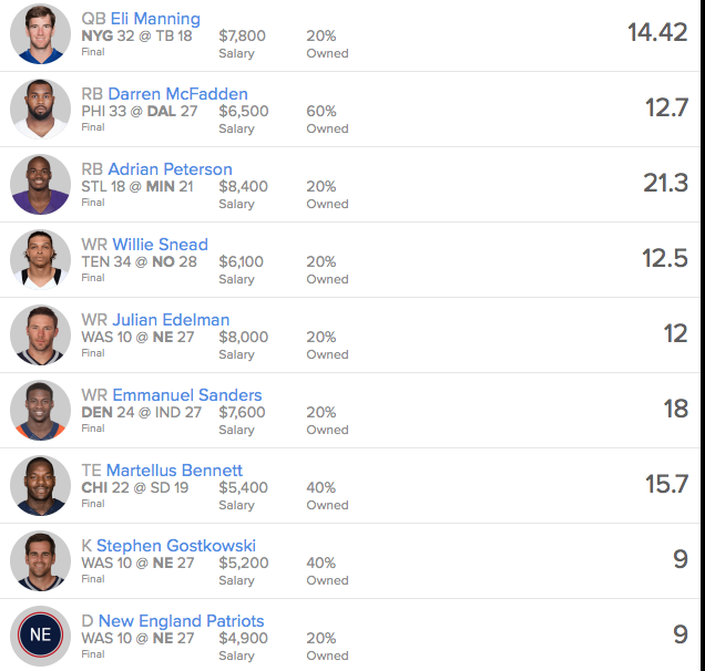 For Week 9, I challenged a few writers to a friendly contest on FanDuel.
